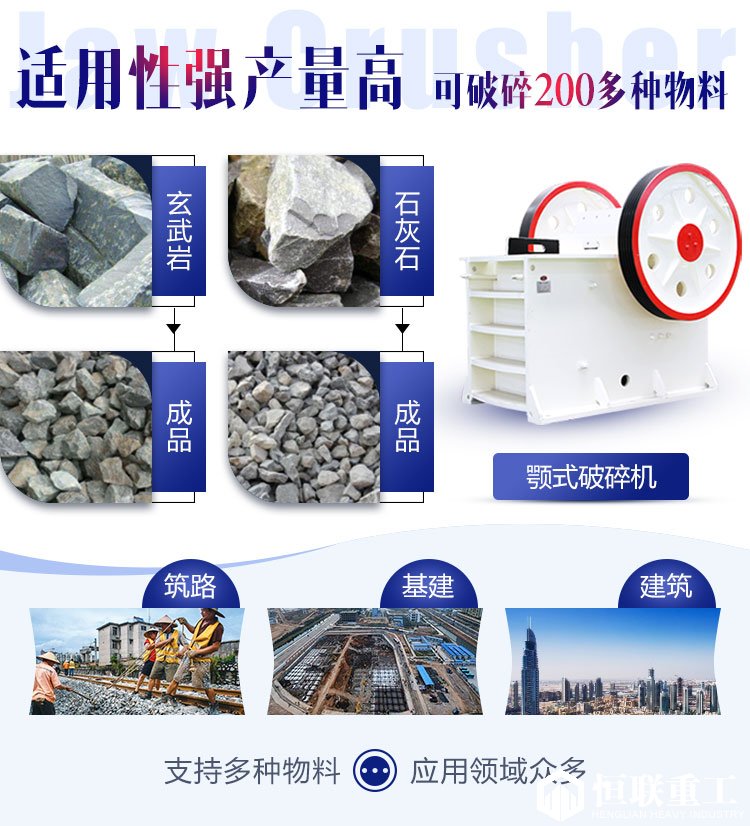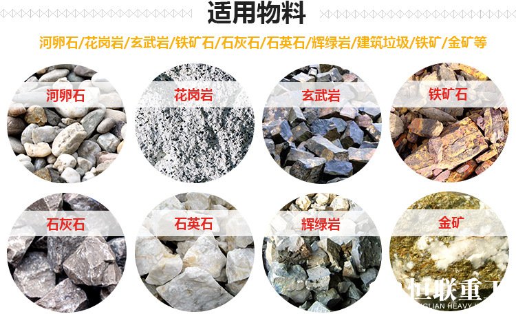 【適用物料】:河卵石、花崗巖、玄武巖、鐵礦石、石灰石、石英石、輝綠巖、建筑垃圾、鐵礦、金礦等