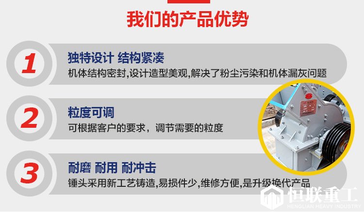 錘式破碎機(jī)結(jié)構(gòu)密封,解決了破碎車間的粉塵污染和機(jī)體漏灰問(wèn)題。破碎比大、效率高