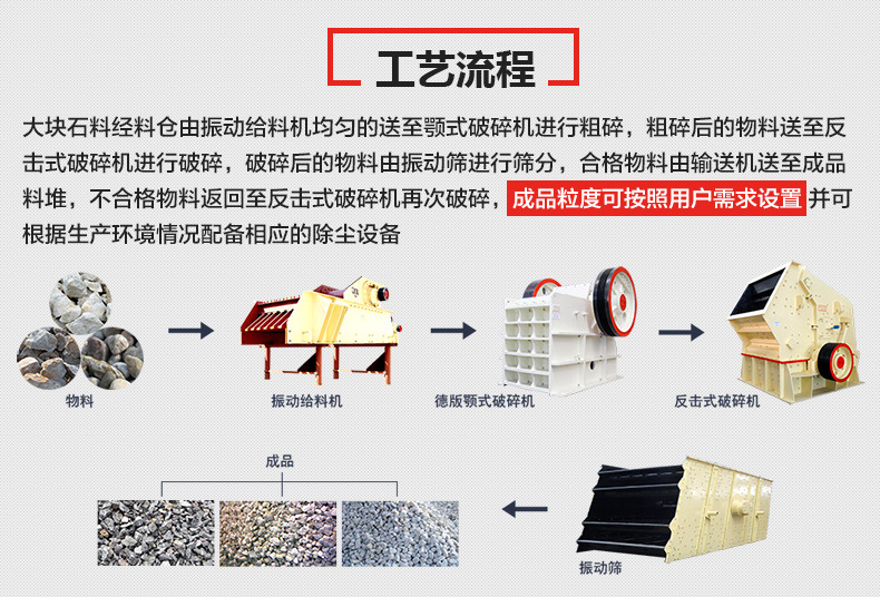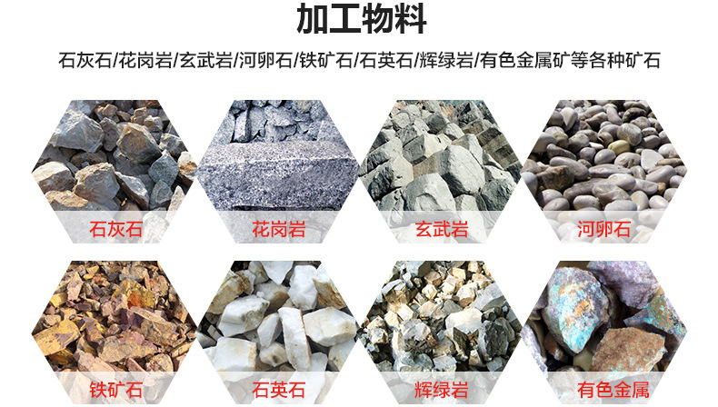 【適用物料】:可用于硬質(zhì)石灰石、花崗石、玄武巖、河卵石、冶金渣等多種物料