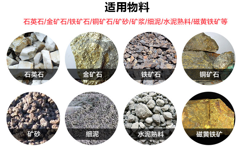 【適用物料】:石英石、金礦石、鐵礦石、銅礦石、礦砂、礦漿、細泥、水泥熟料、磁黃鐵礦等。