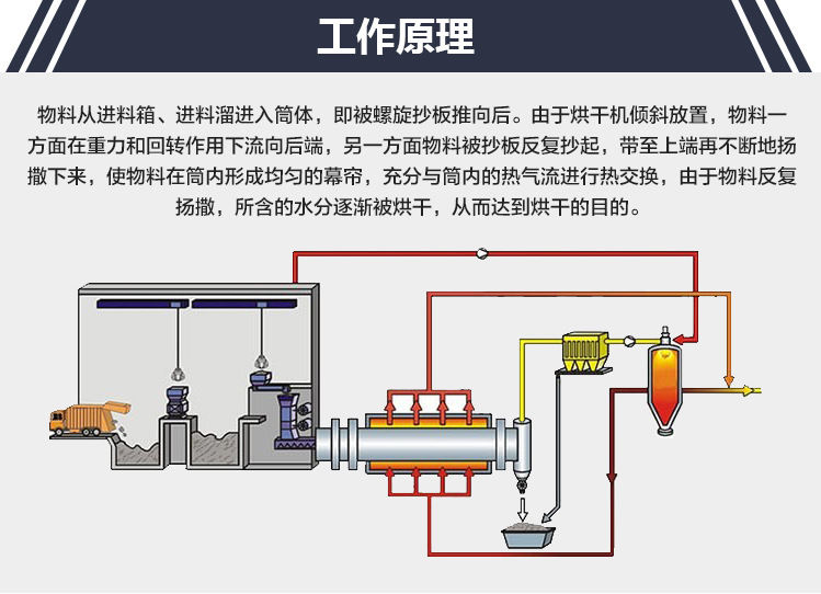 筒體運(yùn)轉(zhuǎn)平穩(wěn)可靠,使物料烘干更均勻。干燥高效