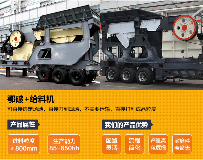 移動顎式破碎機,輪胎式移動破碎站:主要應用于城市的拆遷現(xiàn)場,用于建筑垃圾的破碎回收等。應用于多種硬度巖石物料和礦石物料破碎。