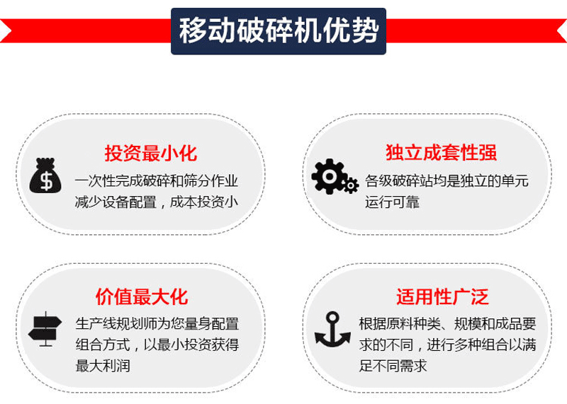 移動式破碎站可以在現(xiàn)場加工物料,而不必將物料搬離現(xiàn)場再加工,大大地降低了物料的運輸成本。